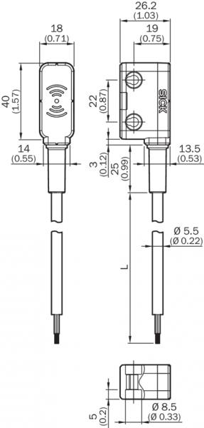 | Безопасное расстояние включения Sao | | Активная сенсорная поверхность с фронтальной стороны | 14 mm | | Активная чувствительная поверхность сбоку | 9 mm |