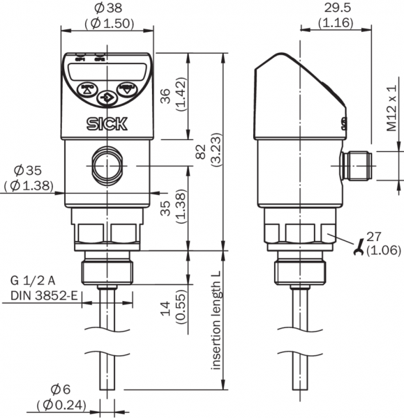 Электрическое подключениеКруглый штекерный соединитель M12 x 1, 4-контактный