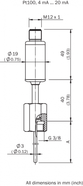 Тип подключения Круглый штекерный соединитель M12 x 1, выходной сигнал Pt100