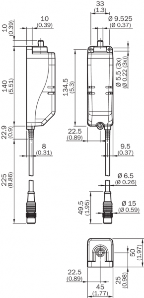 Габаритный чертеж Датчик с кабелем и штепсельным разъемом