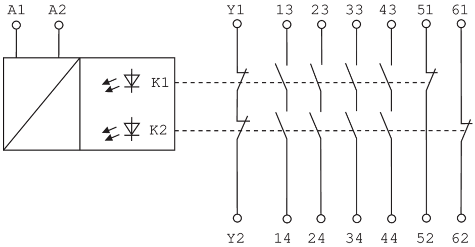 | Количество токопроводящих линий обратной связи (нормально закрытый) | 1, Контроль внешних устройств (EDM) |