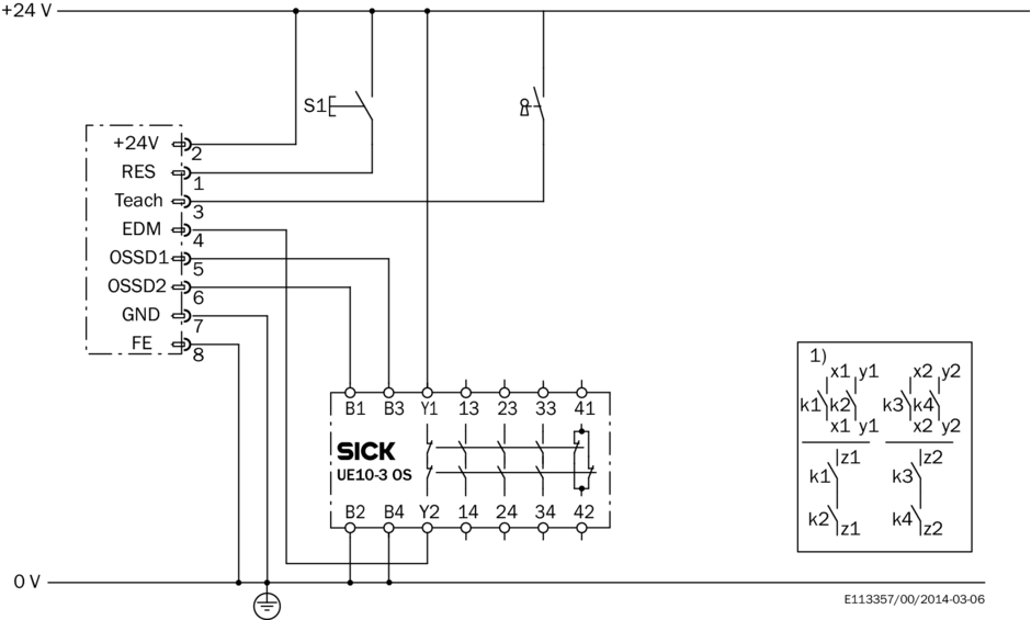Пример схемы подключения Надежная система камер с защитным реле UE10-3OS