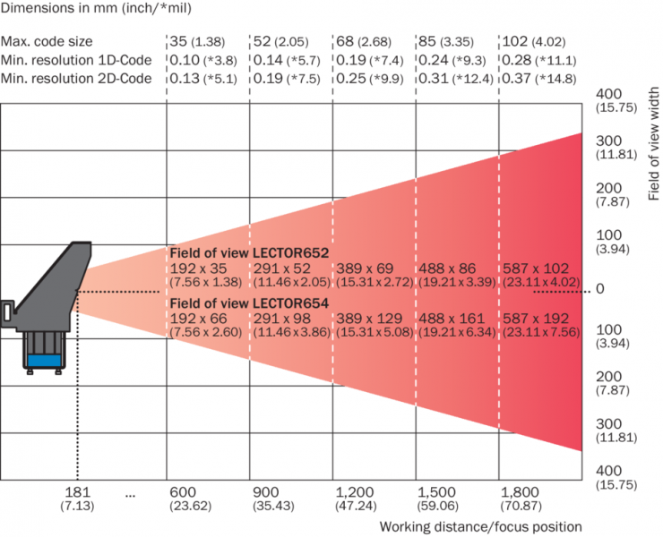 Габаритный чертеж поле видимости Lector65x Dynamic Focus с панорамой 54 мм Зона обзора Вид: Галерея Список Показать всё Скрыть всё
