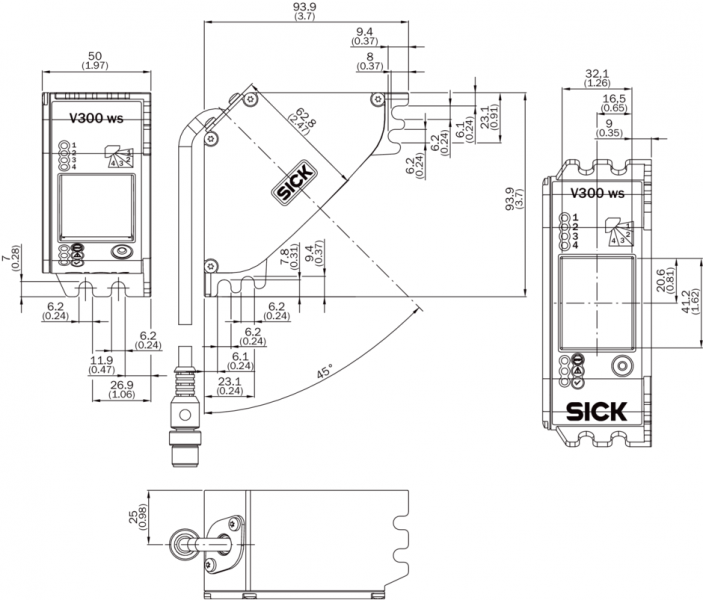 Диапазон защитного поля | Разрешение 20 мм | 1,41 m | Разрешение 24 мм | 1,7 m | Разрешение 30 мм | 2,12 m |