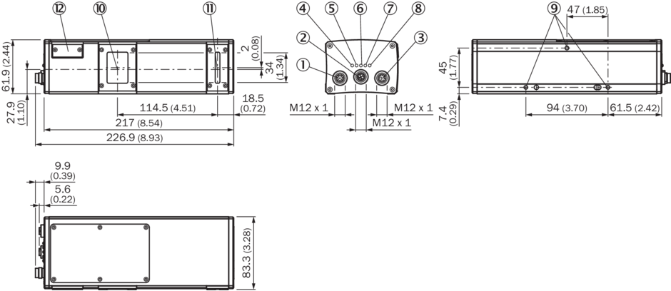 M12, 8-конт. гнездо, X-кодирование (Gigabit Ethernet)