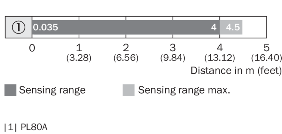 Дистанция работы, макс.0,035 m ... 4,5 m 1)
