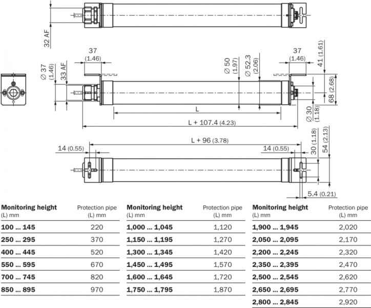 Габаритный чертеж Высокоавтоматизированная световая завеса MLG-2 Pro без корпуса