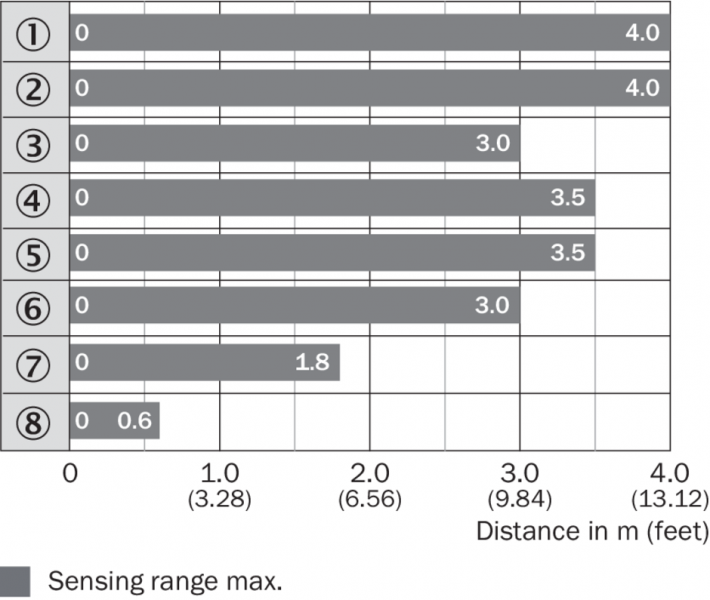| Дистанция работы, макс. | 0 m ... 4 m 1) |