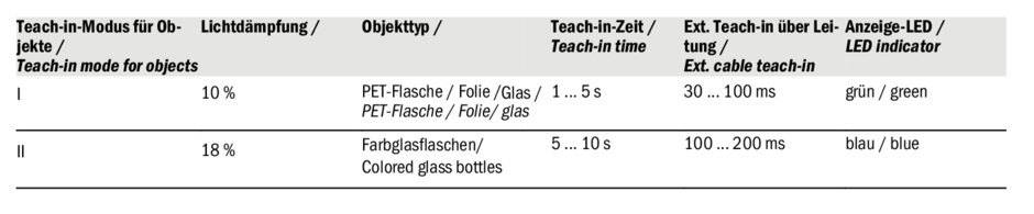 Опции настройки WL11-2, Teach-in