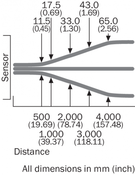 Диаграмма расстояний срабатывания WL12G-3