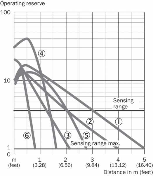 Диаграмма расстояний срабатывания WL4S-3, WLG4S-3, 5 m