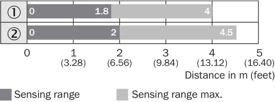 | Дистанция работы, макс. | 0 m ... 4,5 m 2) |