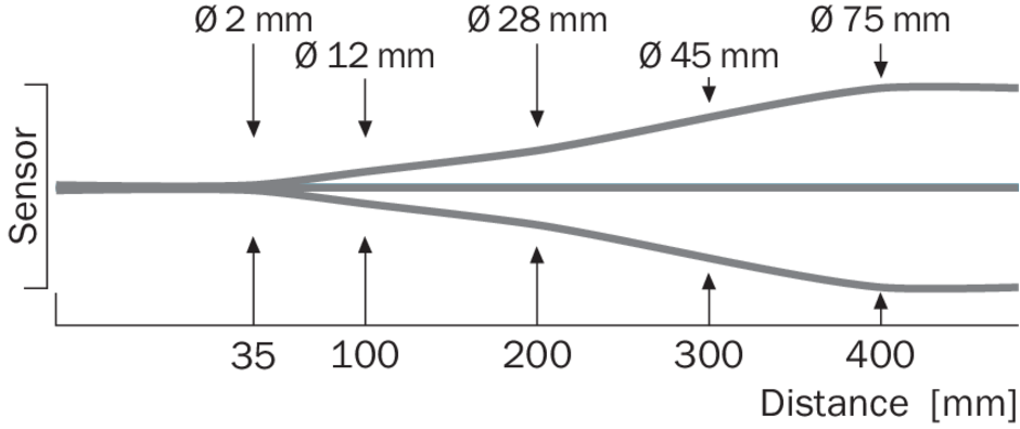 Размеры светового пятна (расстояние)Ø 2 mm (35 mm)