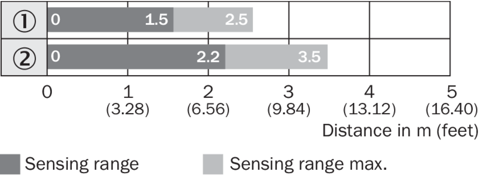 | Расстояние срабатывания | 0 m ... 2,2 m 1) |
