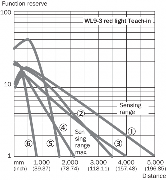 Диаграмма расстояний срабатывания WL9-3, красный свет, 5 м