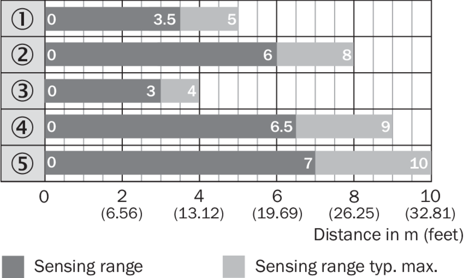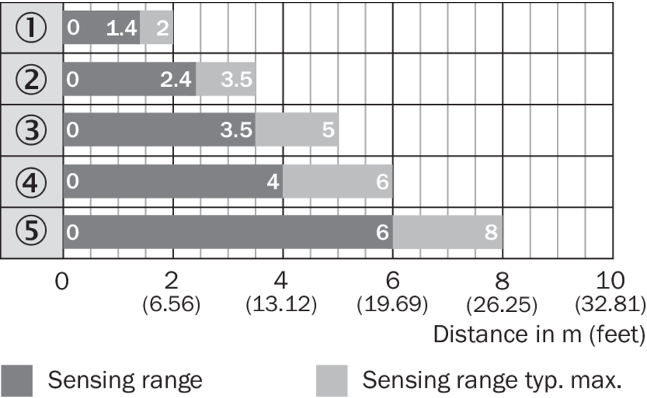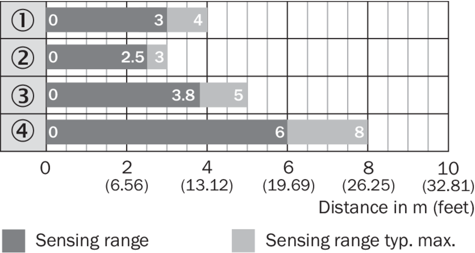 Диаграмма расстояний срабатывания Стандартные отражатели
