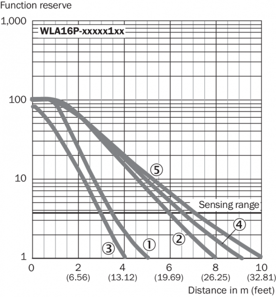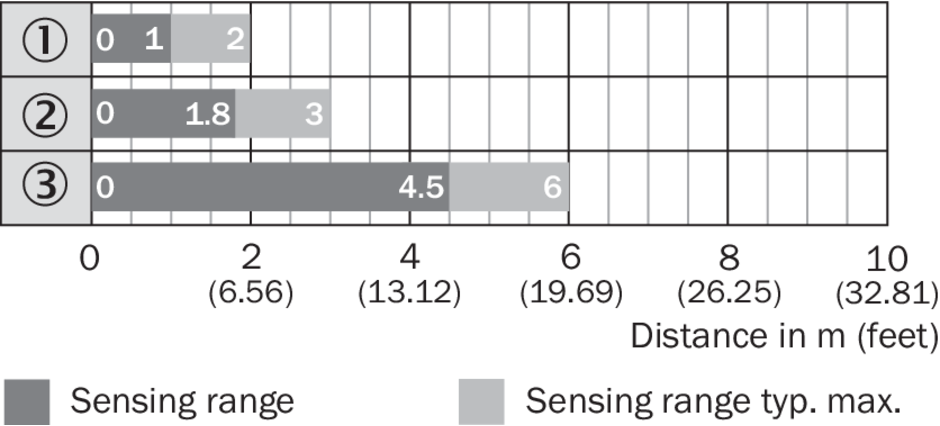 Диаграмма расстояний срабатывания Отражатели, стойкие к воздействию химикатов