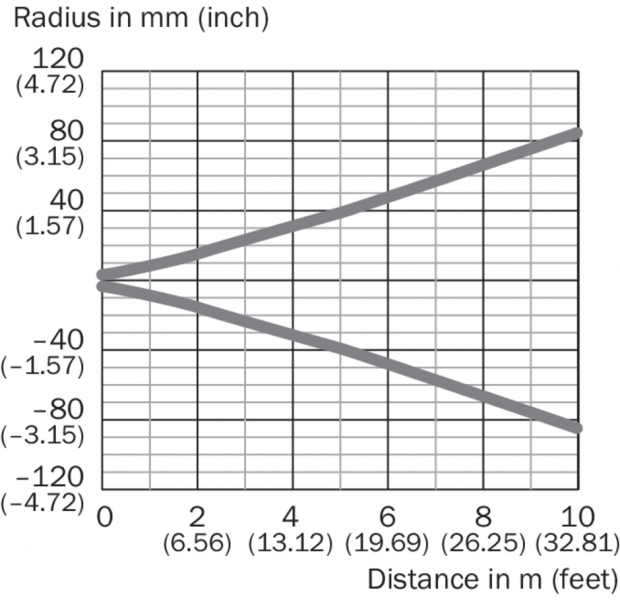Размер светового пятна WLA16P-xxxxx1xx