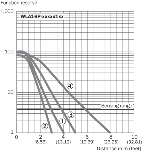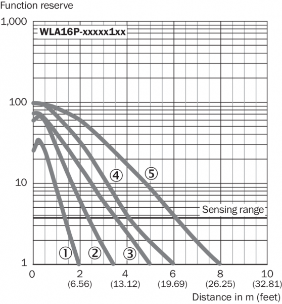 Диаграмма расстояний срабатывания Отражатели, стойкие к воздействию химикатов