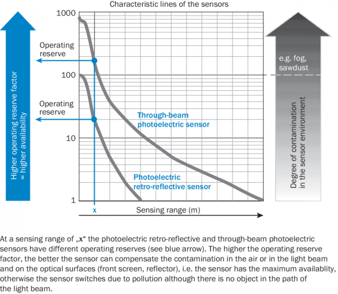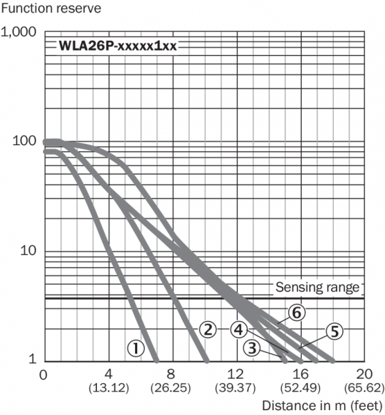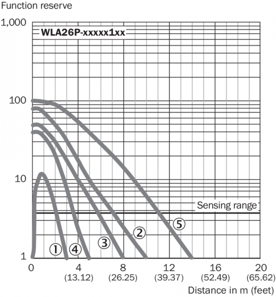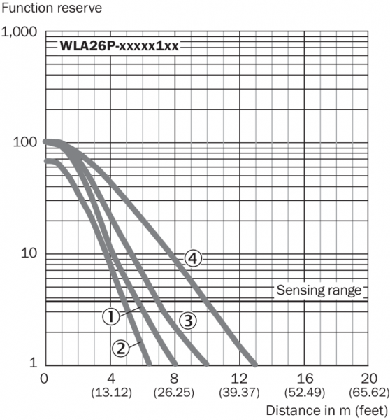 Диаграмма расстояний срабатывания Отражатели, стойкие к воздействию химикатов