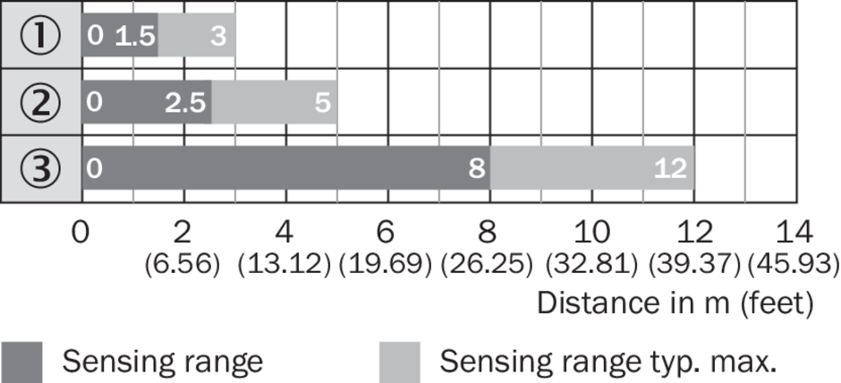 Диаграмма расстояний срабатывания Стандартные отражатели