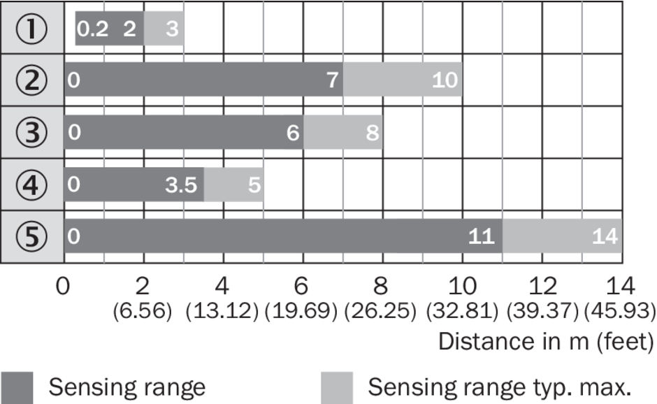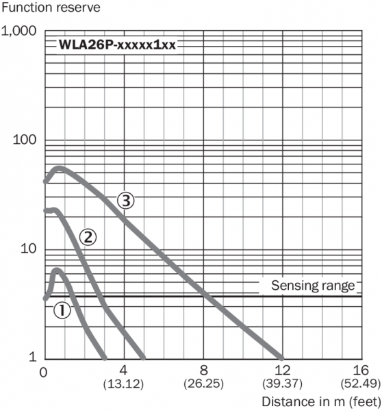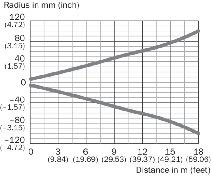 Диаграмма расстояний срабатывания Отражатели, стойкие к воздействию химикатов