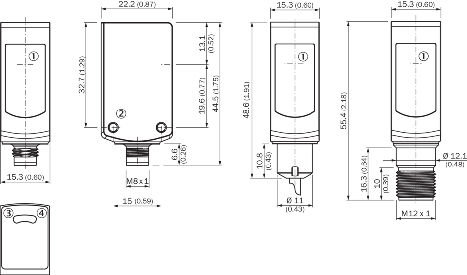 Габаритный чертеж WL4S-3V, WLG4S-3V, без кнопки Teach-in