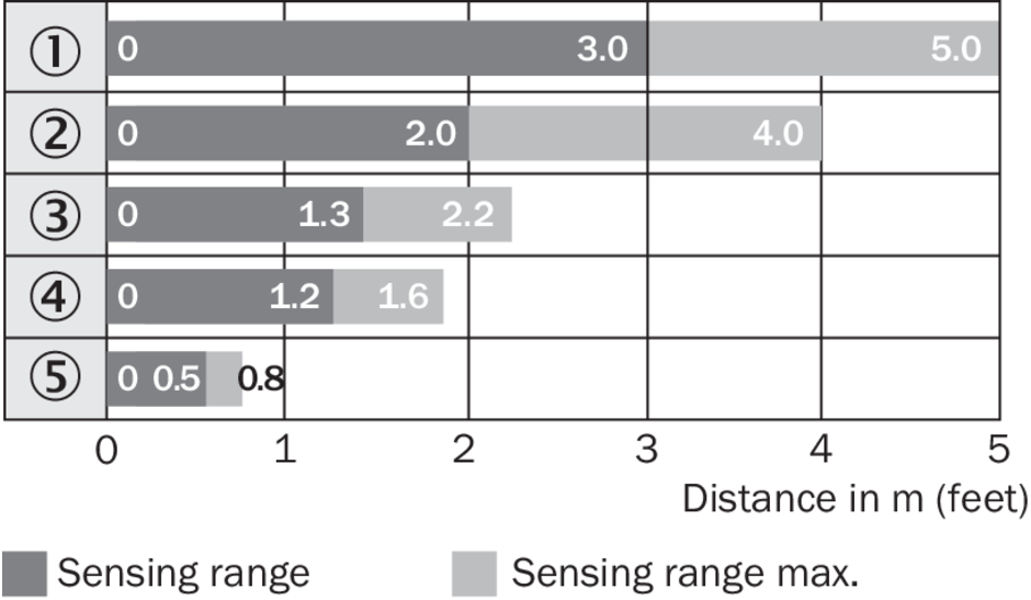 | Дистанция работы, макс. | 0,01 m ... 5 m 1) |