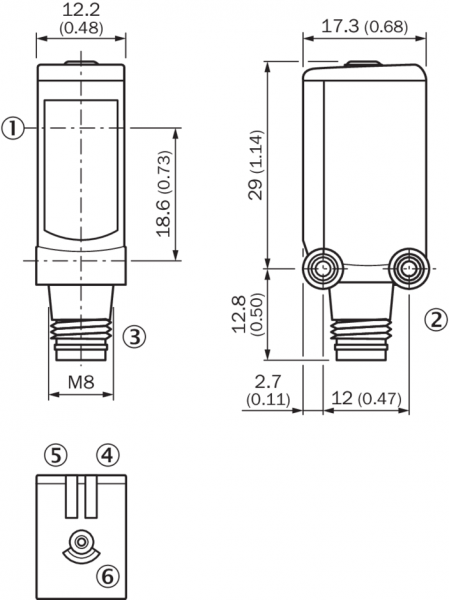 Габаритный чертеж WL4S-3, WLG4S-3, кнопка Teach-in