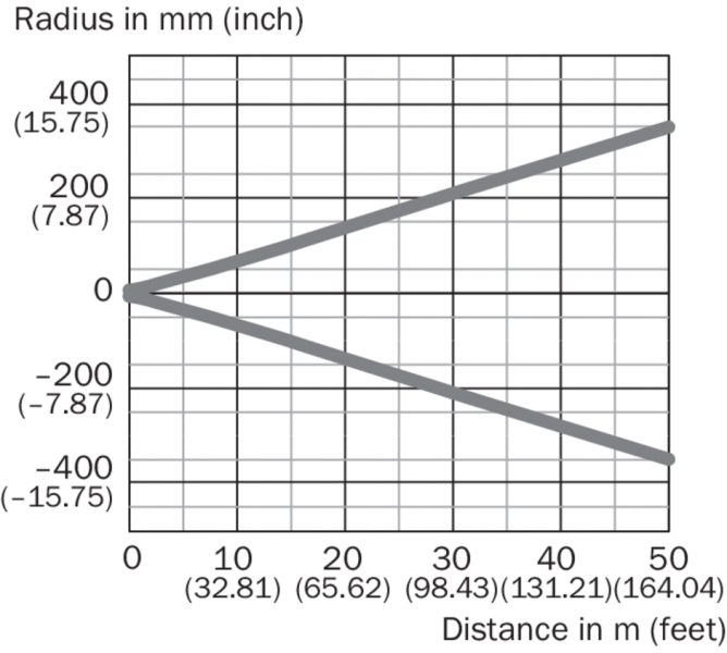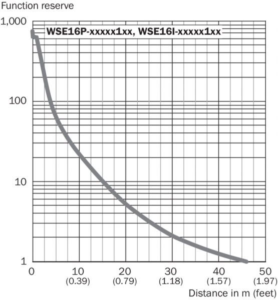 Диаграмма расстояний срабатывания WSE16P-xxxxx1xx, WSE16I-xxxxx1xx