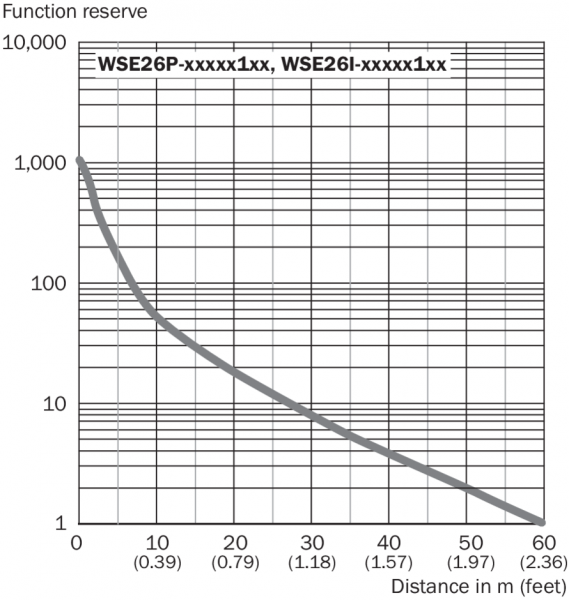 Диаграмма расстояний срабатывания WSE26P-xxxxx1xx