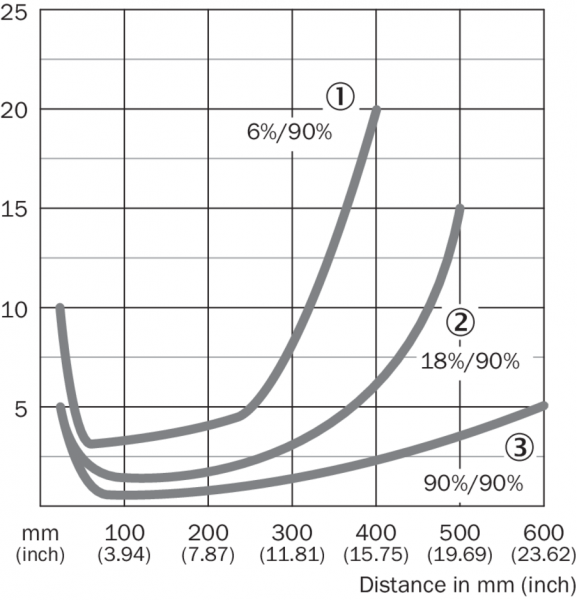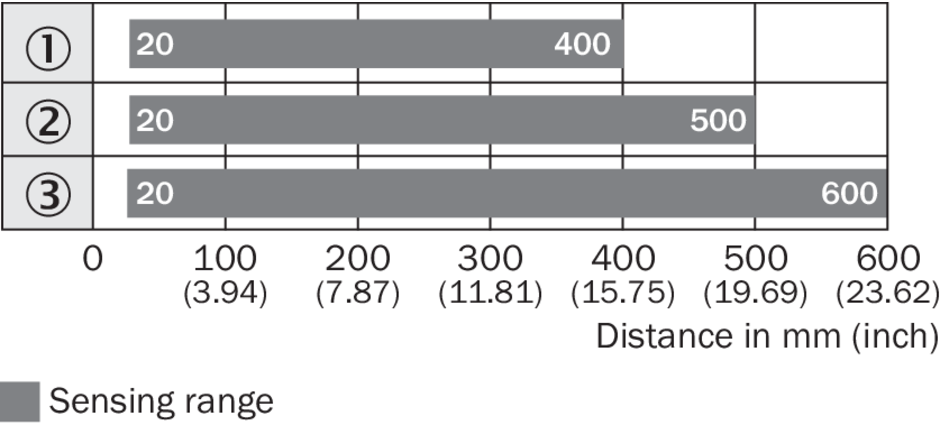 | Расстояние срабатывания | 20 mm ... 600 mm |