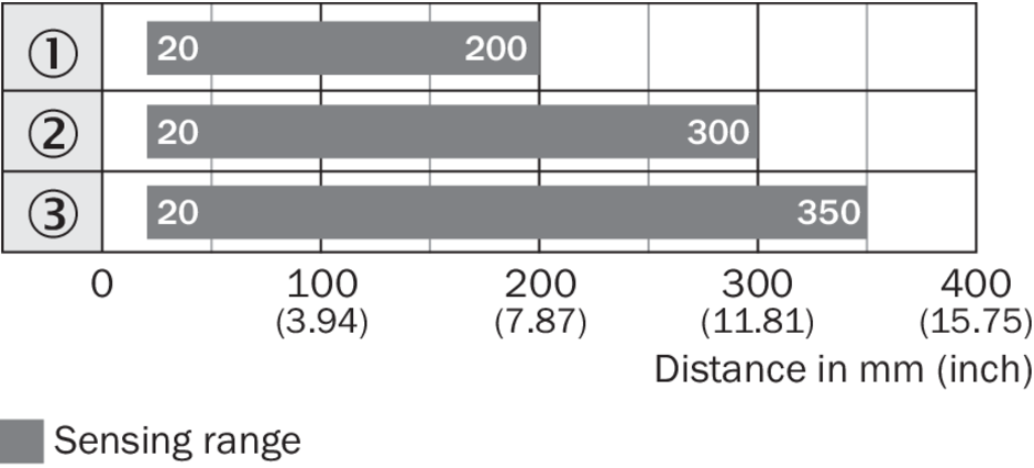 | Расстояние срабатывания | 20 mm ... 350 mm |