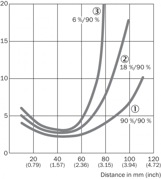 | Расстояние срабатывания | 10 mm ... 90 mm 1) |