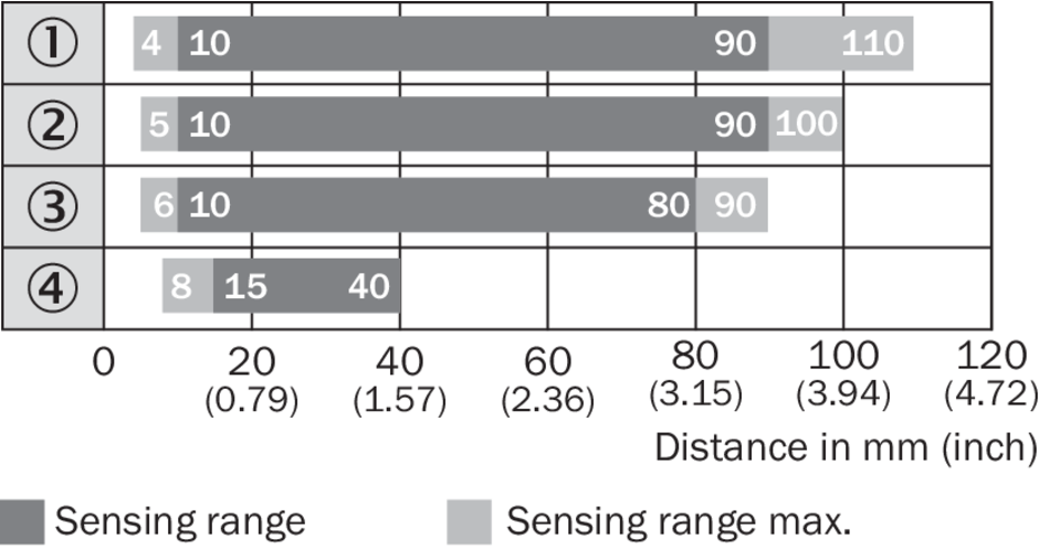 | Дистанция работы, макс. | 4 mm ... 110 mm 1) |