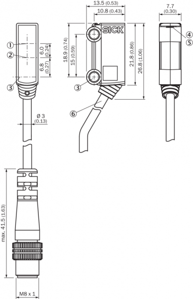 | Тип подключения | Кабель с разъемом M8, 4-конт., 200 mm 6) |