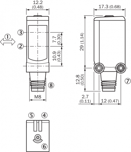 Габаритный чертеж WTB4S-3, кнопка Teach-in