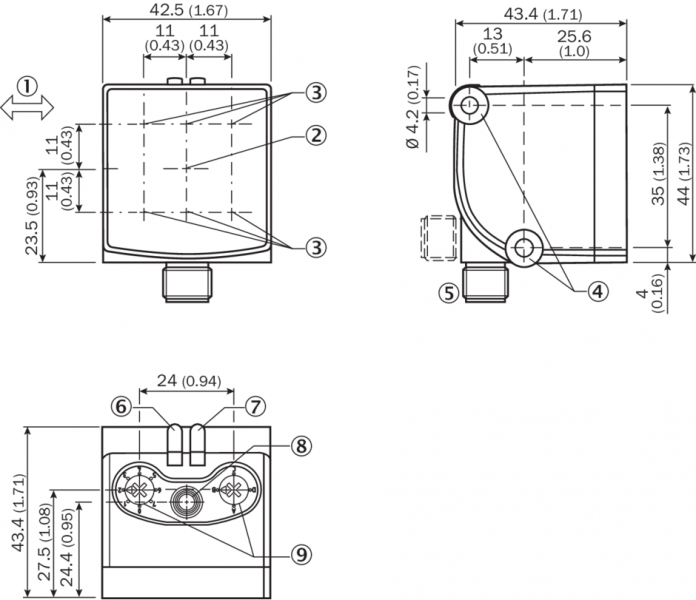 • 1) Макс. расстояние срабатывания относительно передней кромки объекта. При этом передняя кромка объекта должна находиться в пределах рабочей зоны.