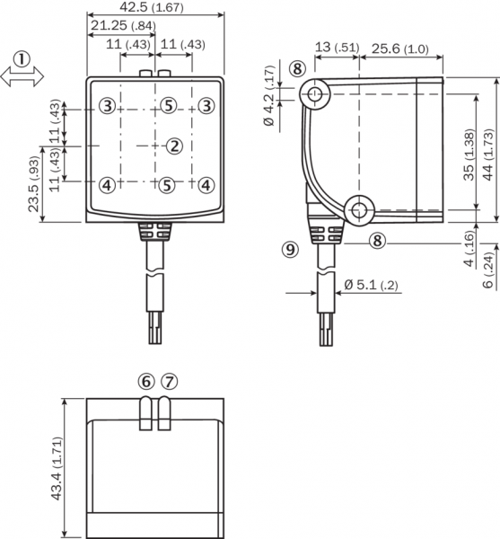 • 1) Макс. расстояние срабатывания относительно передней кромки объекта. При этом передняя кромка объекта должна находиться в пределах рабочей зоны.