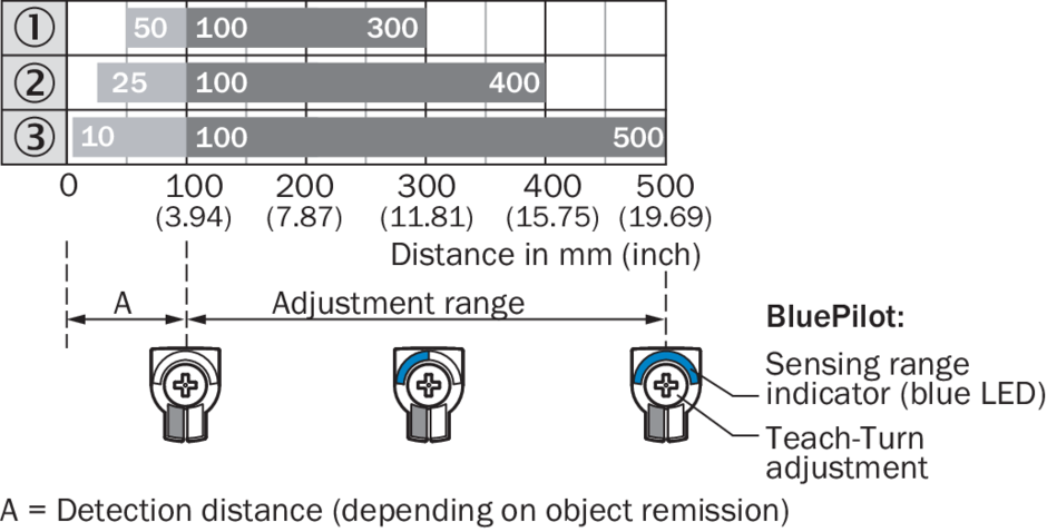 | Настройка | BluePilot: поворотно-нажимной элемент с индикацией расстояния срабатывания IO-Link |