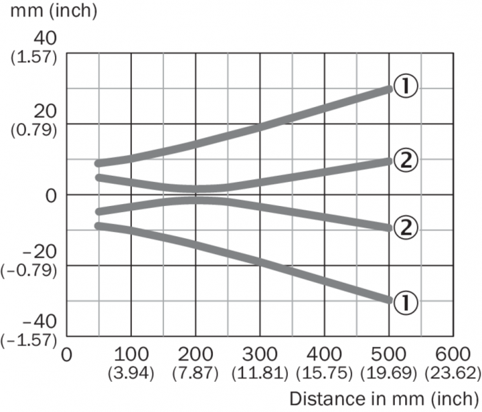 | Дистанция работы, макс. | 10 mm ... 500 mm 1) |