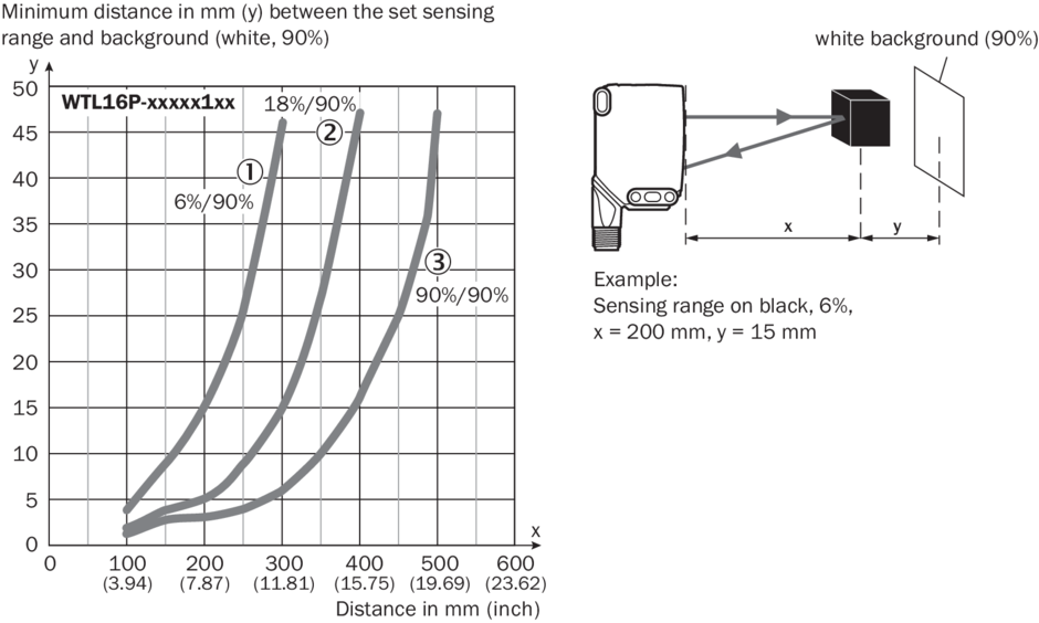 Диаграмма расстояний срабатывания WTL16P-xxxxx1xx