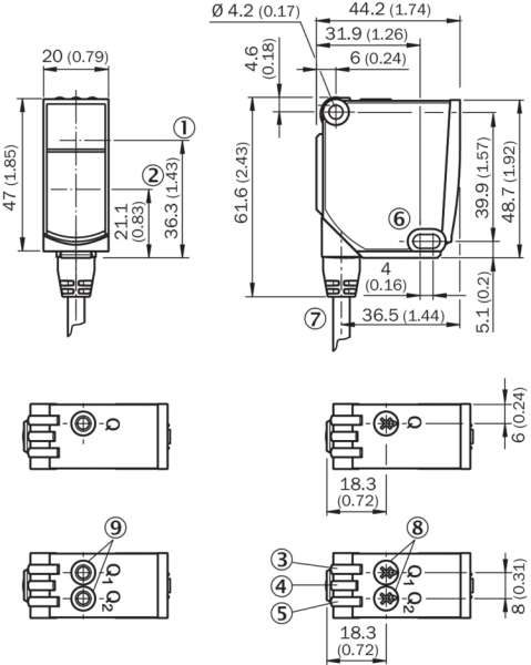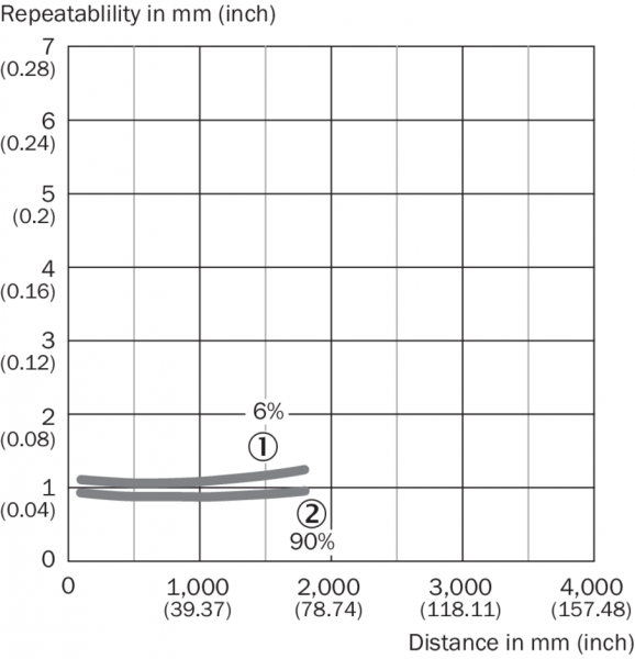 1) Распознаваемый объект с коэффициентом диффузного отражения 6–90 % (на основе стандарта белого, DIN 5033).