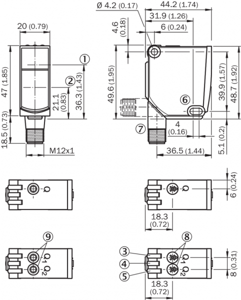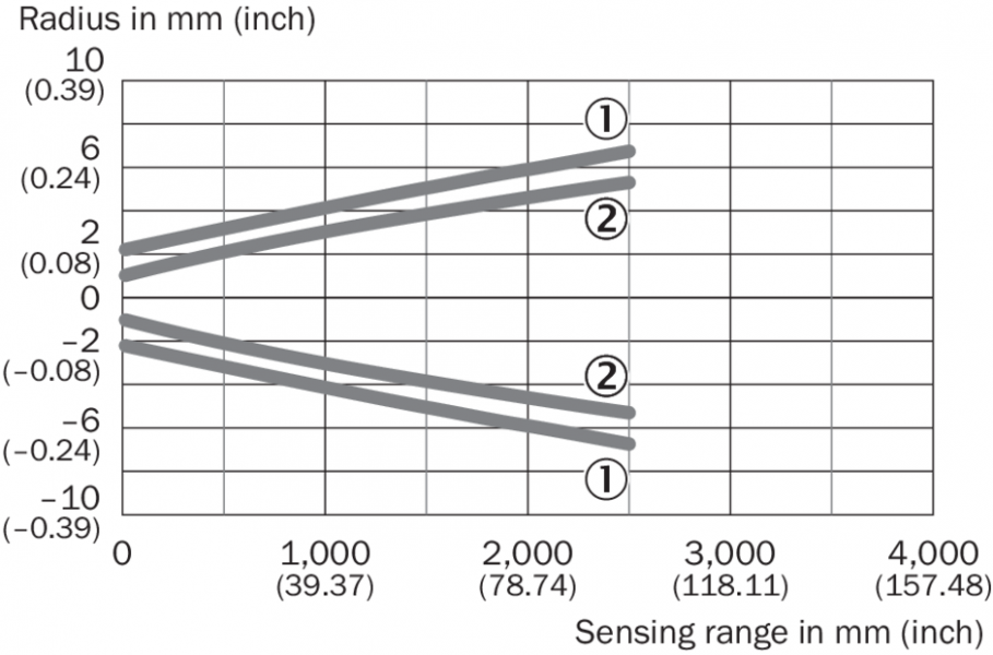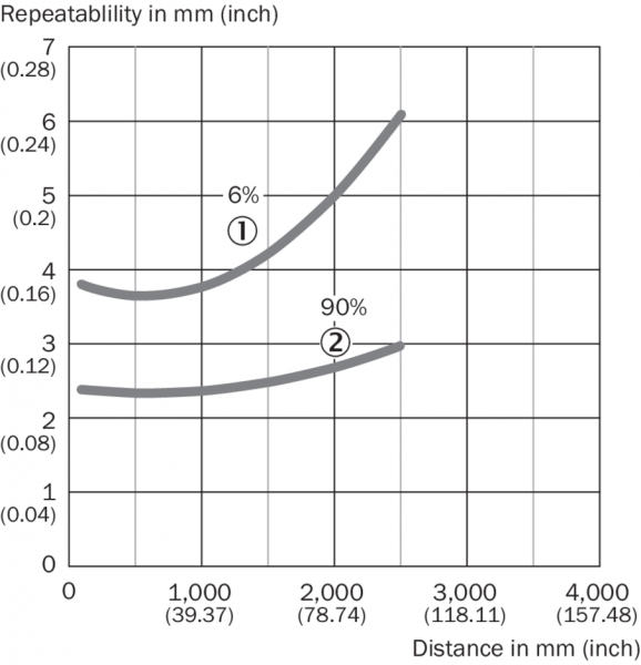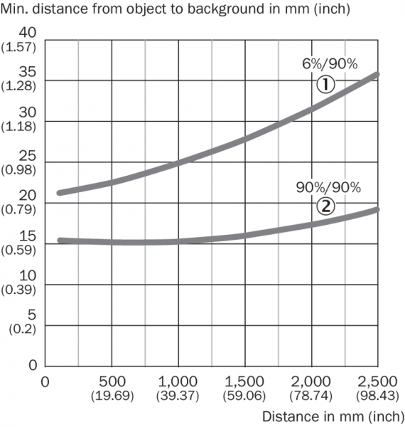 • 1) Распознаваемый объект с коэффициентом диффузного отражения 6–90 % (на основе стандарта белого, DIN 5033).