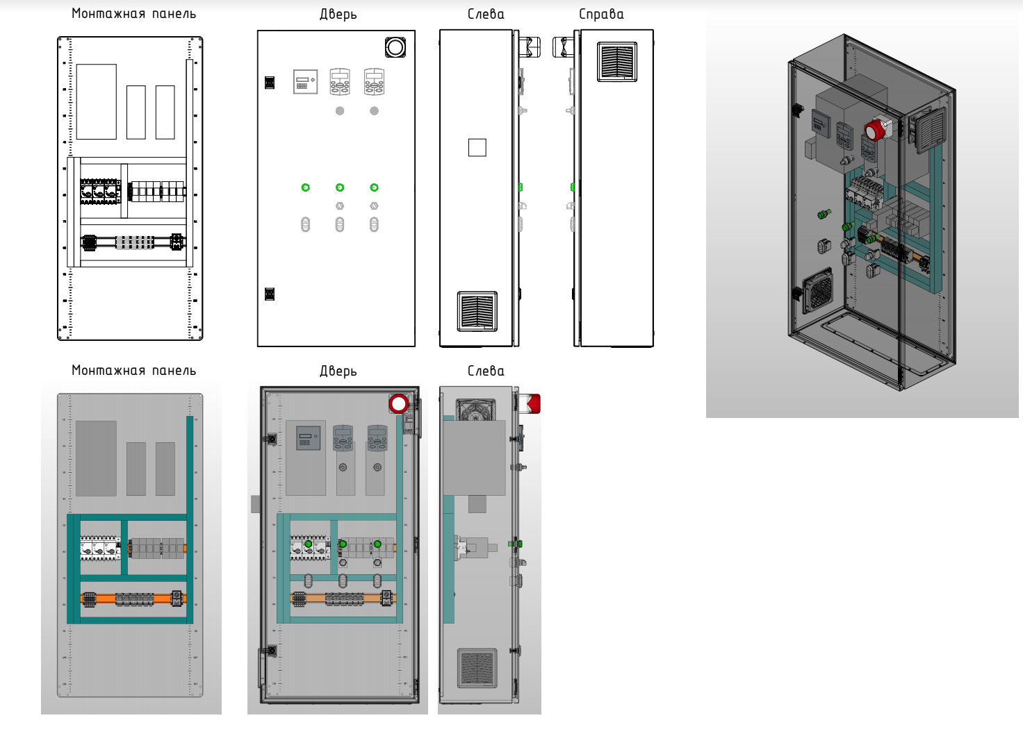 • Пульт управления и автоматики с частотными преобразователями для основного и заднего двигателей