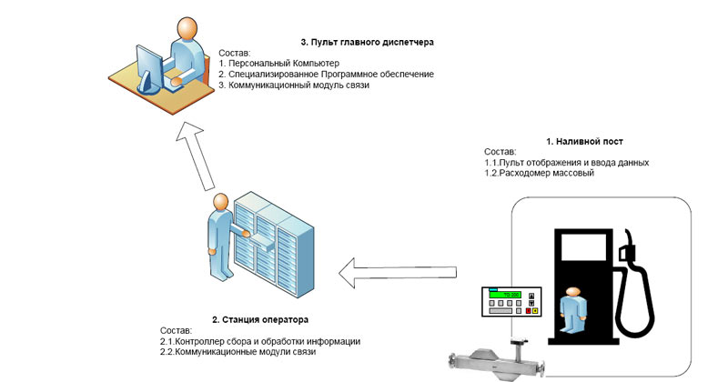 Дежурный оператор задает на панели необходимый объем для отгрузки топлива. После нажатия кнопки «СТАРТ» на панели, система включает электродвигатель и начинается процесс отгрузки, используя в качестве дозирующего устройства массовый расходомер Siemens. При достижении заданного параметра, Система отключает двигатель. По желанию Заказчика Система может осуществлять контроль аварийных ситуаций электродвигателей насосов.