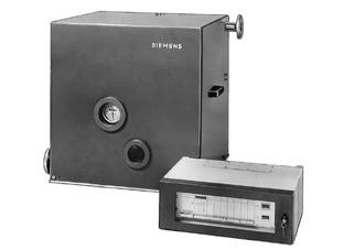 ФункцииOverview of how drum meters work Drum meters/standard samplerDrum meters are purely mechanical devices where the liquid to be measured drives the mechanism. It must be ensured that there is no counter-pressure on the outlet, i.e. a backpressure of the liquid must not occur in the meter. The measuring unit, the rotating drum, is divided into three chambers. Filling-up of the bottom chamber and overflowing of the liquid into the next chamber displaces the center of gravity of the filling, and a turning movement results. The drum is rotated by one third of its circumference, i.e. the next chamber is swung down and then filled whilst the previous chamber is emptied through the outlet. The number of times the drum is moved round is transmitted from the axis of the drum to a single-pointer dial with a 5-digit non-resettable drum-type counter via a magnetic coupling. The quantity determined from the number of drum rotations is directly displayed in liters. SITRANS A ethyl alcohol metersThe ethyl alcohol meters work by the same principle as the drum meters. In other words, the total quantity of spirits flowing through the drum is measured. Since the quantity of pure alcohol (ethyl alcohol) present in the spirits must be known for taxing purposes, the spirits are passed prior to the quantity measurement through a test setup consisting of temperature measuring equipment with a Pt 1000 sensor and equipment for measuring the density. Pulses proportional to the quantity are output by means of a double pulser coupled to the drum. The input signals for quantity, temperature and density are compared in a computer with the defined values of the OIML alcohol table. Following displays are output on two non-resettable electromechanical pulse counters in the computer: