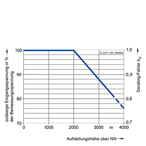 При установке на высоте выше 2000 м (6562 футов), линейное напряжение не должно превышать заданных значений, чтобы обеспечить защиту от бросков напряжения в соответствии с EN 60664 1 для бросков напряжения категории III. Если на высоте > 2000 м (6562 футов) линейное напряжение превышает заданный предел, то должны быть приняты меры для снижения переходных бросков напряжения категории III до значений категории II, например, оборудование должно содержать изолирующий трансформатор.