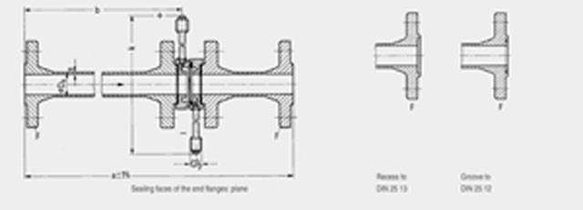 ДизайнДиафрагма с кольцевыми камерами, состоящая из двух арматурных колец со сменным измерительным диском формы А и В (см. конструкции дроссельных приборов в „Техническом описании“, „Функция“); зафланцована между входными и выходными участками с длинами по DIN 19 205. Tabellenstil: Technische Daten 2