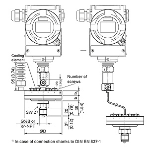 | Permissible ambient temperature | Dependent on the pressure transmitter and the filling liquid of the remote seal More information can be found in the technical specifications of the pressure transmitters and in the section "Technical data of filling liquid" in the introduction to the remote seals |